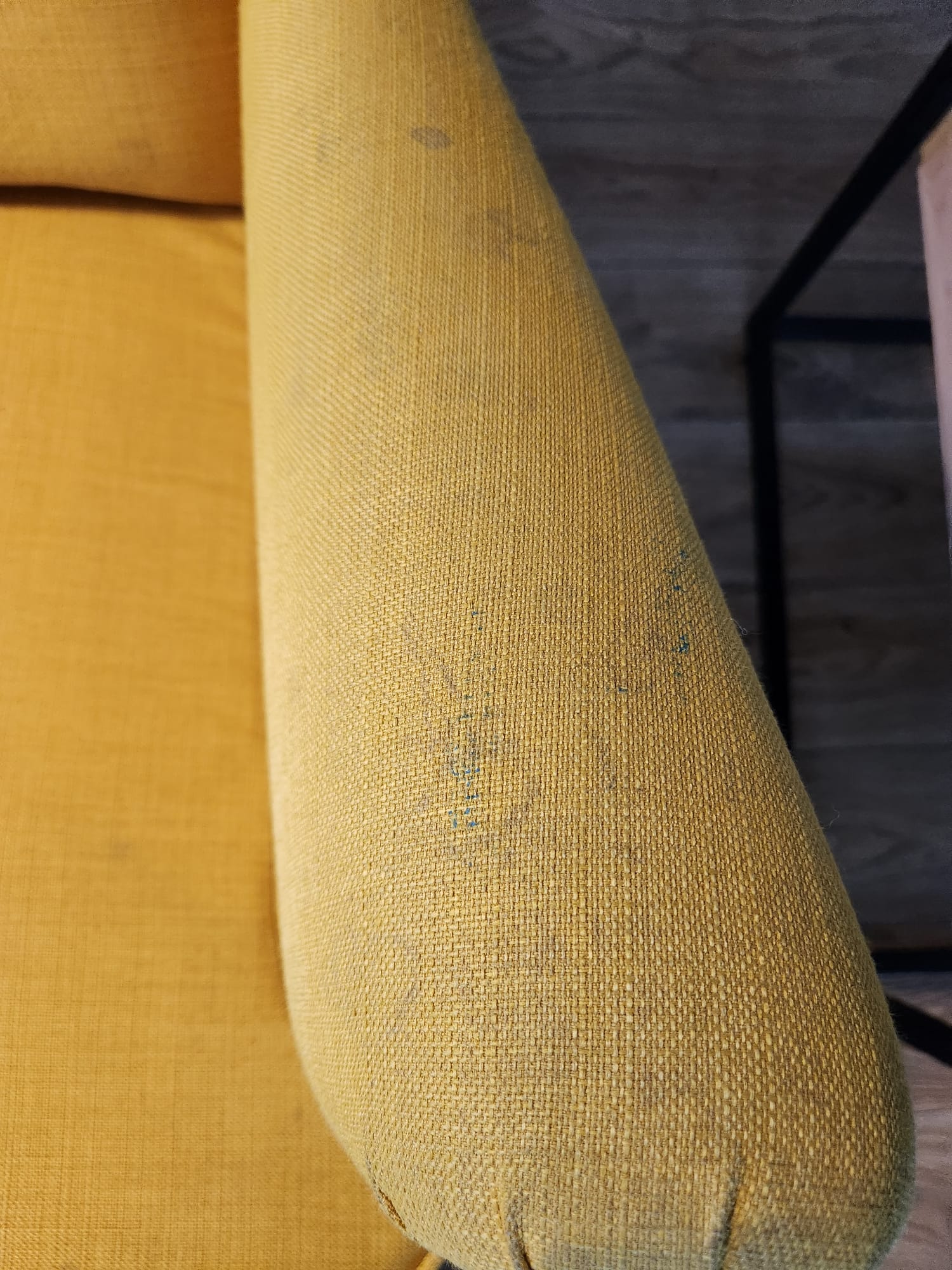 Taki kolor tapicerki jest bardzo wymagający, przy realizacji widać ślady zalania co znacznie odbiło się na barwie mebla oraz samej tapicerce. Oceńcie sami czy jest widoczny efekt.