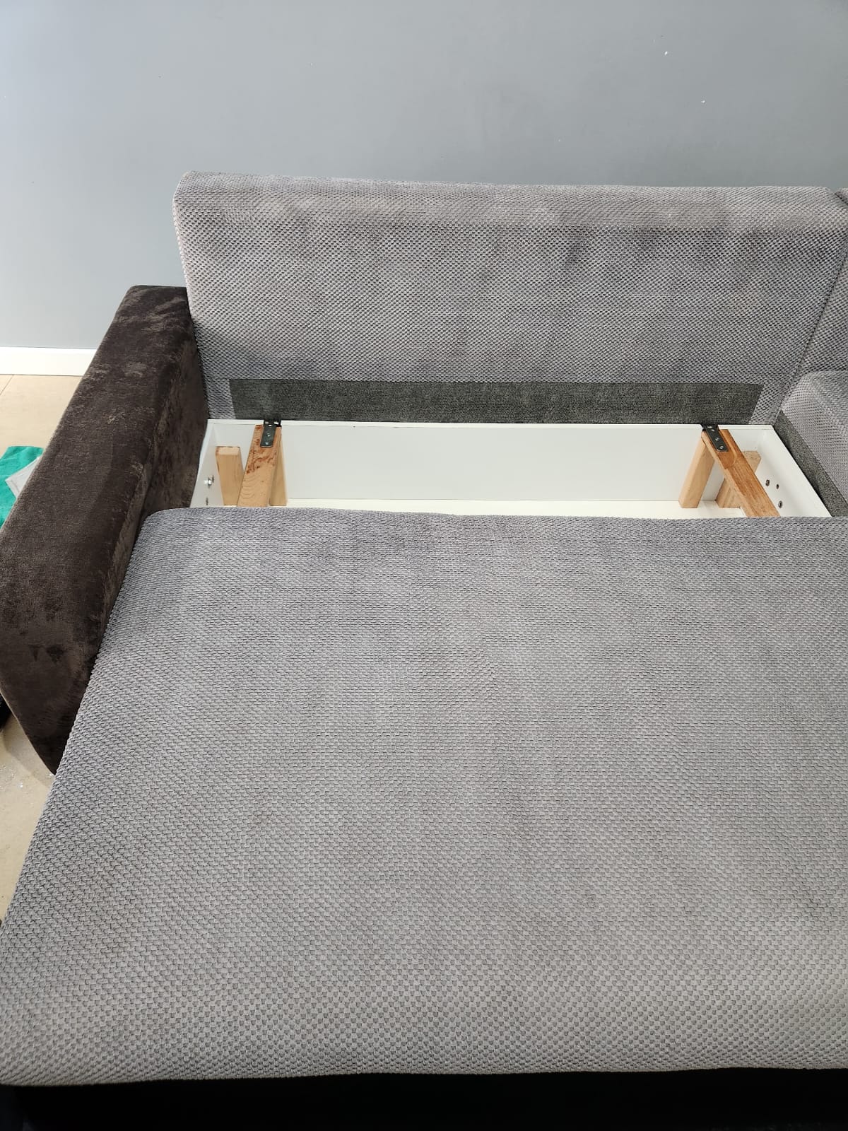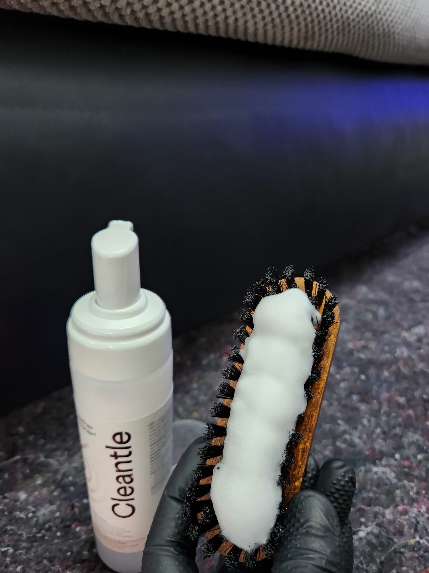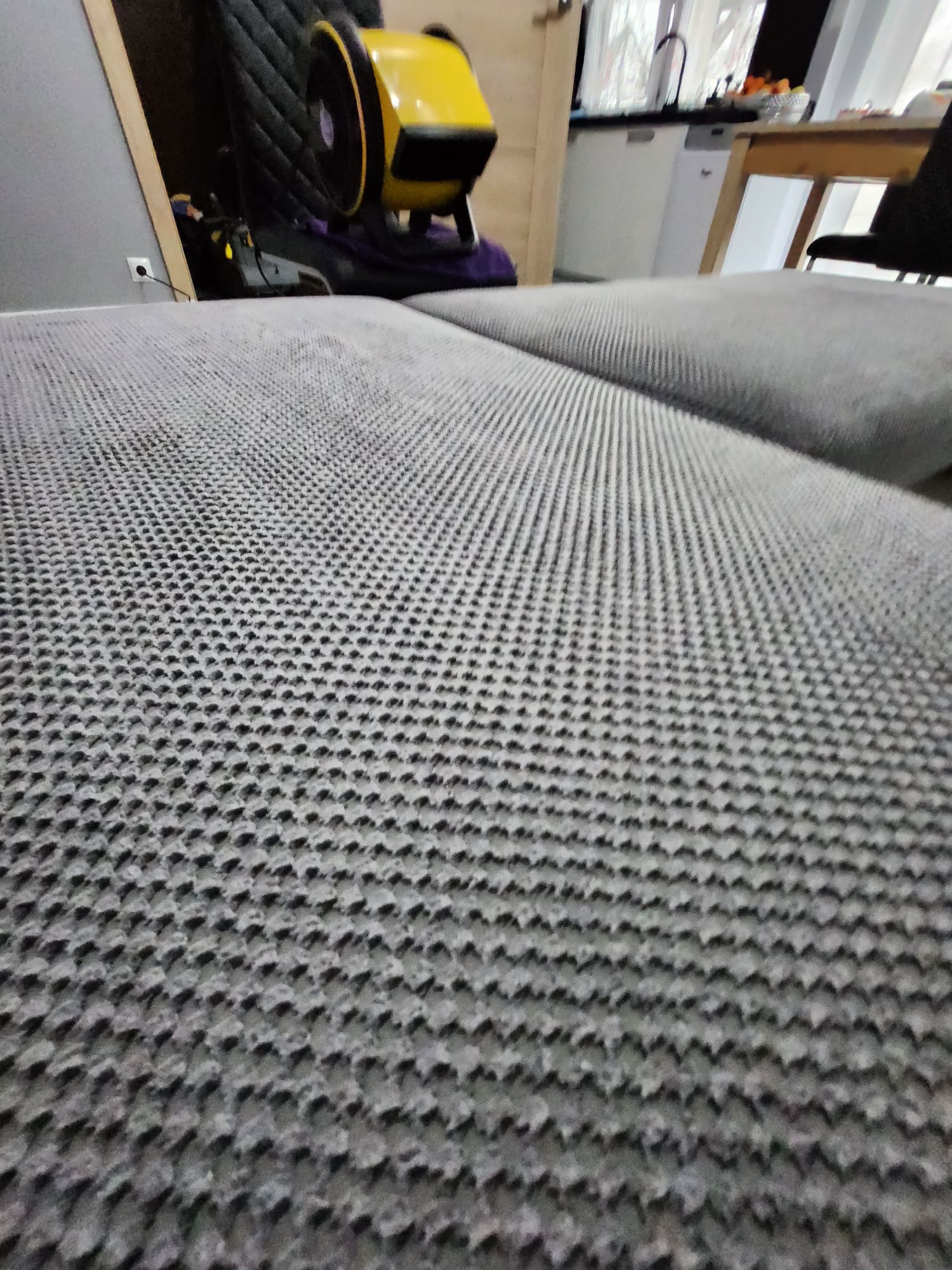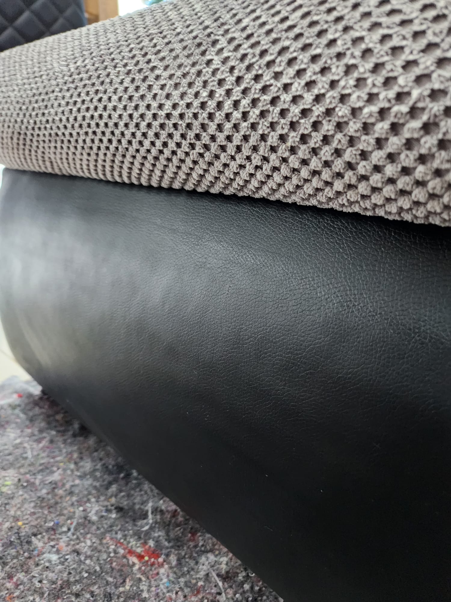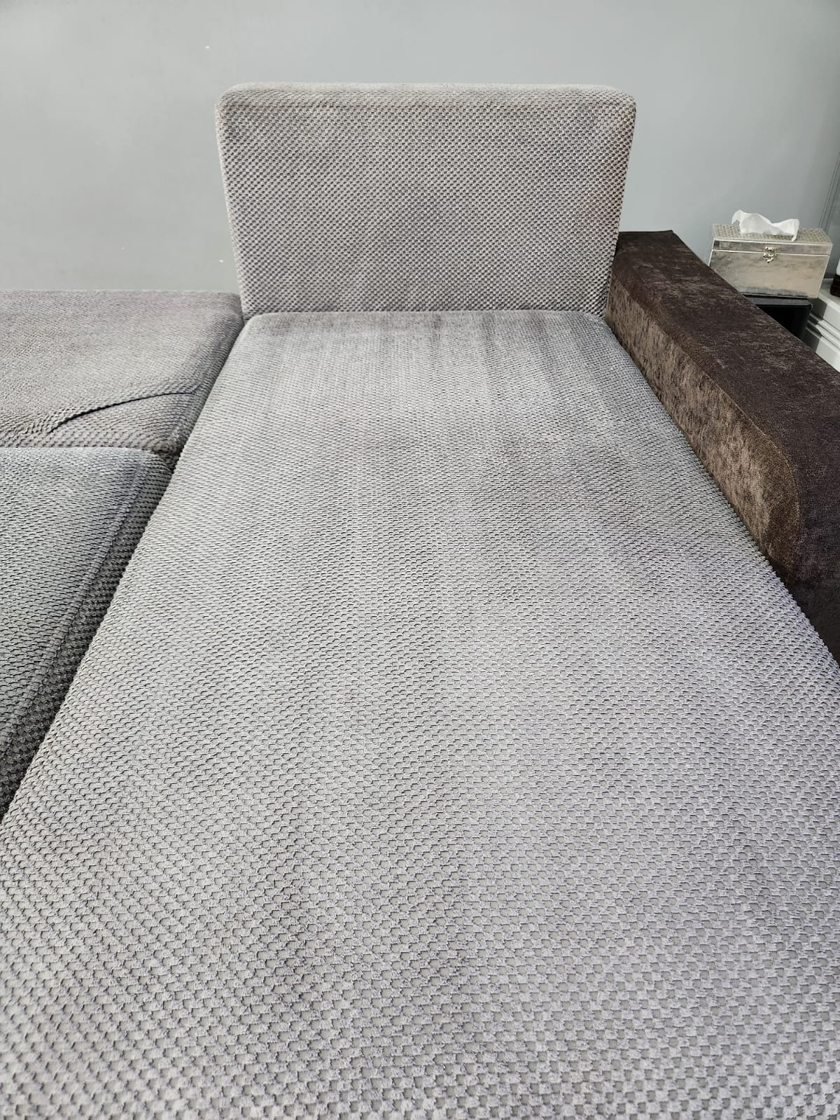 Kolejna realizacja to narożnik z funkcją spania, widoczne zabrudzenia mocno osadzone w strukturze poszycia, dodatkowo przeprowadzona renowacja obszyć z eco skóry.