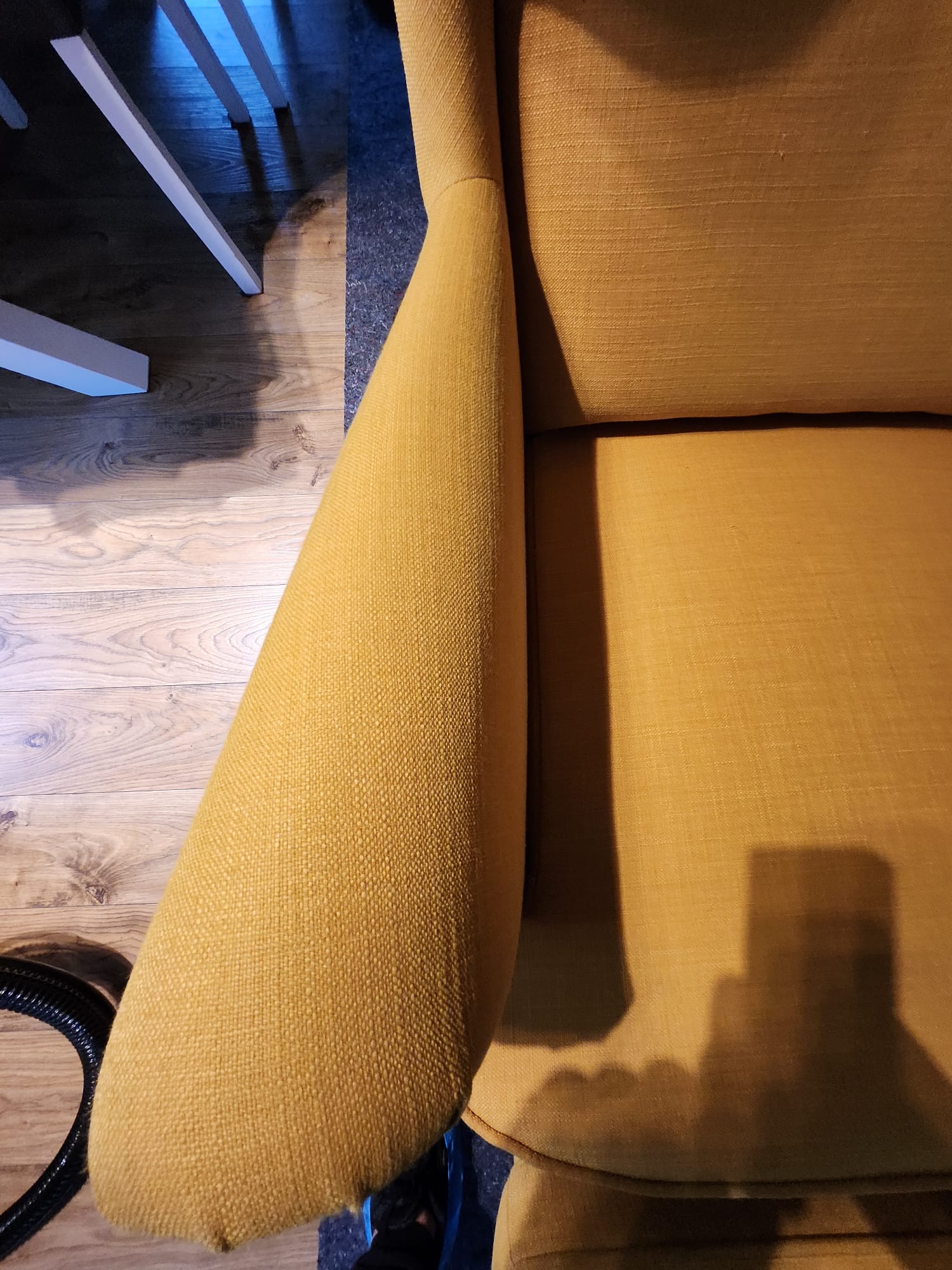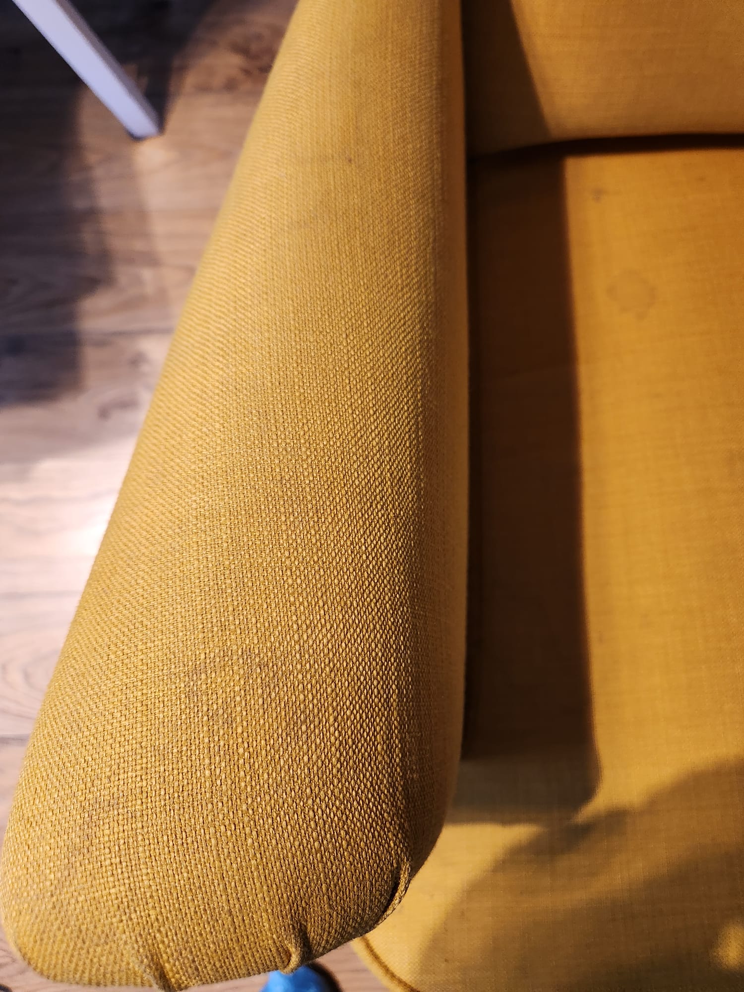 Taki kolor tapicerki jest bardzo wymagający, przy realizacji widać ślady zalania co znacznie odbiło się na barwie mebla oraz samej tapicerce. Oceńcie sami czy jest widoczny efekt.